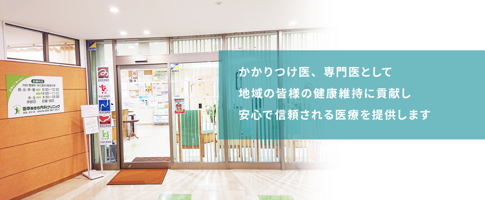 2つの理念と4つの運営方針を掲げ、急病(発熱、腹痛、胸痛など)の診断・治療、慢性疾患のケア、専門医による胃・大腸内視鏡を2006年から続けています。